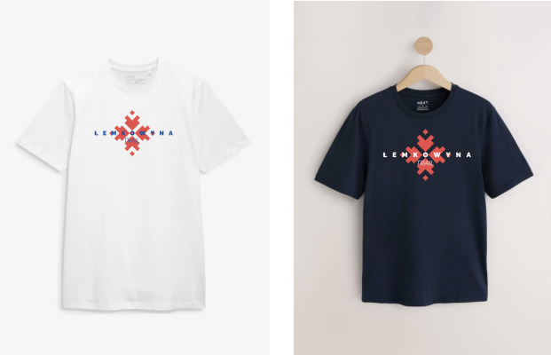 Stylowa koszulka z unikatowym nadrukiem inspirowanym kulturą łemkowską. Dostępna w dwóch wersjach kolorystycznych – klasycznej bieli oraz eleganckim granacie.
